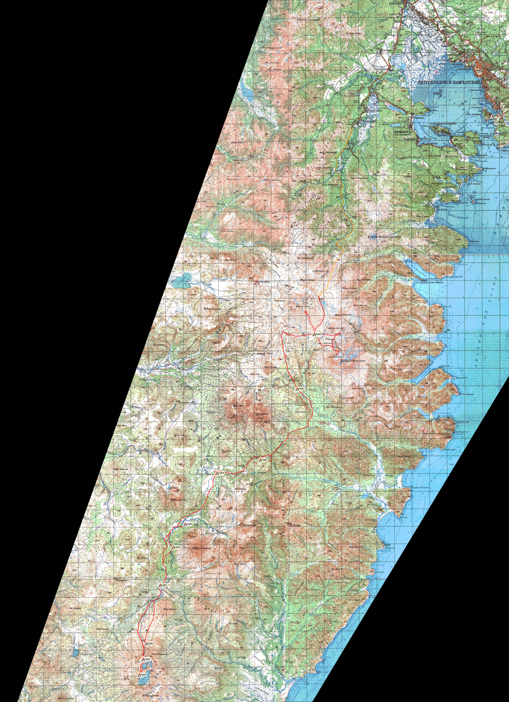 Девять часов, столько времени занимает перелет из Москвы в Петропавловск-Камчатский и еще девять часовых поясов разделяют эти два города. Поэтому вылетев в 16 часов 14го июля на место мы прибыли в 9 утра уже следующего дня. Около двух часов ушло на то чтоб получить багаж, забрать разрешение ФСБ на маршрут и найти машину. Заброска из аэропорта Елизово до озера Срединного, расположенного на плато у вулканов Горелый и Мутновский на Mitsubishi Pajero обошлась в 3500 рублей.