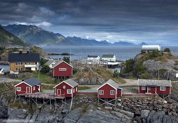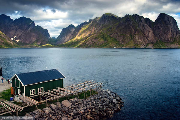 Стуве, окрашенные в традиционные красный, зеленый или синий цвет, с белыми наличниками и торцами срубов, и сейчас выглядят очень живописно на фоне суровых Лофотенских пиков. А рыбацкие деревушки расположились вдоль берегов Лофотен, с характерными рыбачьими хижинами ("рорбу").