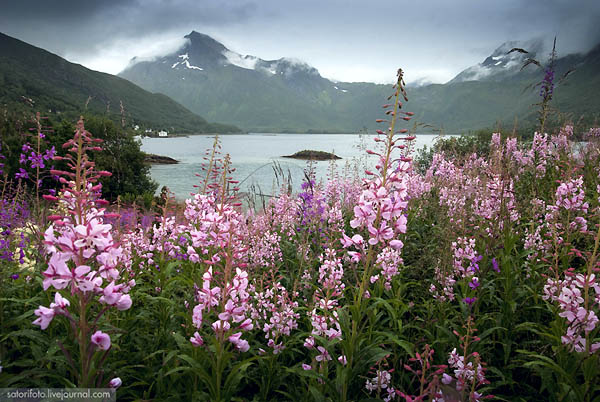 В июле-начале августа берега Лофотен зарастают травой и Иван-чаем. В дождливый день они хорошо добавляют цвета в пейзаж. Норвежские тоннели очень знамениты. Сколько же это надо труда, чтобы построить такое количество тоннелей для удобства своих граждан? Кажется, если какой-нибудь бабушке из рыболовной деревни захочется ходить за ягодами не через перевал - правительство специально для неё построит тоннель.