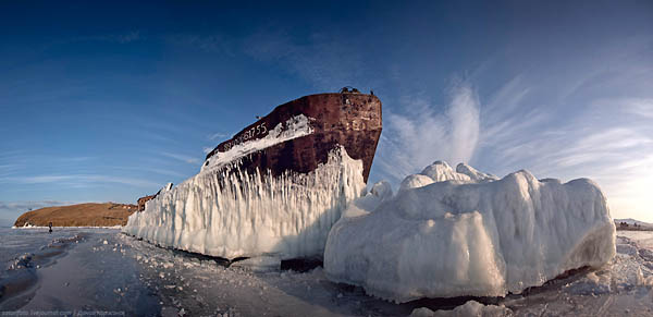 Ну ничего, уехали все на свои турбазы, оставили нас в покое. А мы спокойно добрались до бухты, удивились сосулькам на больших заброшенных кораблях. Созвонились с Таней, дошли до гостиницы. Очень всё скромно, но уютно, недорого и чисто. Таня - добрый, душевный человек. Всё показала нам, помогла чем нужно. И насчёт машины обратной с ней договорились. И ещё одна интересная встреча вечером: встретились с мужичками-рыбаками, которые покупают рыбу у местных и отвозят её в Иркутск. Много мы у них узнали и о рыбалке, и о местах Ольхонских.
