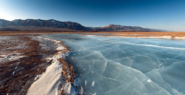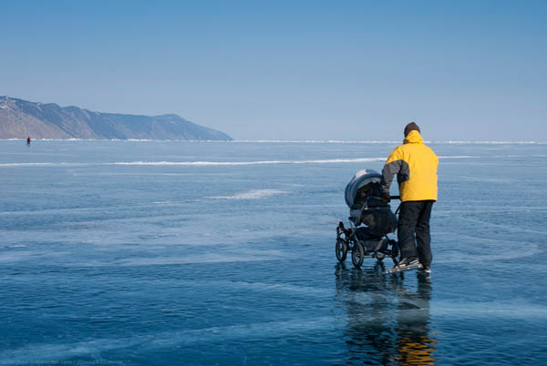 Тут мы слегка разминулись: велосипедисты поехали напрямую, а мы - буквой Г, чтобы не напороться на лёд-колобовник у Кобыльей Головы. Приехали в Тутайский залив, тут всё пустынно, замерло. Велосипедисты ещё едут где-то сзади. Оказалось потом, что они нас потеряли и ждали в проливе. Ну что же - надо было договариваться нам, оба виноваты. А то разъехались сразу же… Готовим кушать, беседуем. Хорошие ребята, но выглядят как-то потерянно. Наверное, и мы тоже так выглядим - у всех завтра прощание с Байкалом. Нас довозят от Тутайского залива в МРС. Мне давно хотелось добраться до базы "Ковчег Байкала" и познакомиться с Сашей. Он много ходит на коньках, на angara.net есть его интересные отчёты о скейт-туринге: Приехали на базу, а Саша, оказывается, в очередном путешествии. Ну что ж, пойдём гулять вдоль Байкала.