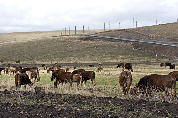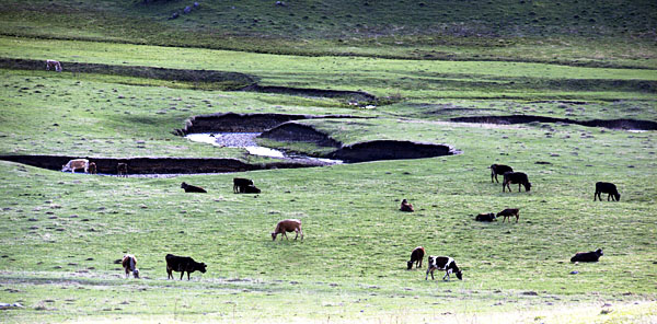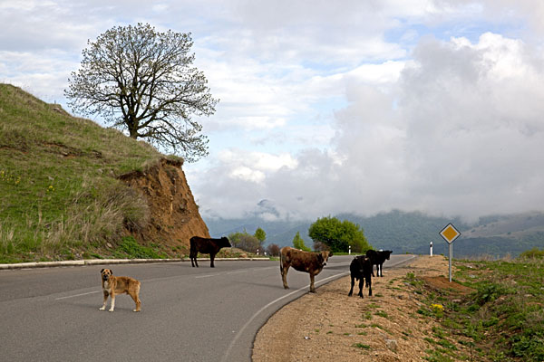 Главные домашние животные - собаки, овцы и коровы. Домашние собаки громко лают на меня, но даже не пытаются кусать; бездомные отбегают подальше. Коровы занимают все свободное от посевов пространство: они бродят по лугам и перегораживают дороги.