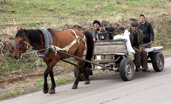 Жизнь в деревнях начинается в 6-7 утра. Большинство людей передвигаются на телегах, запряженных лошадьми. В них едут взрослые мужчины и женщины, дети и даже собаки, которым надоело бежать за хозяином. Лошади соперничают с автомобилями. Непрерывное движение на дороге создает ощущение бурной активности. Картину дополняют приветливо сигналящие мне водители. Стук, гудки, блеяние и мычание - нормальная рабочая атмосфера.