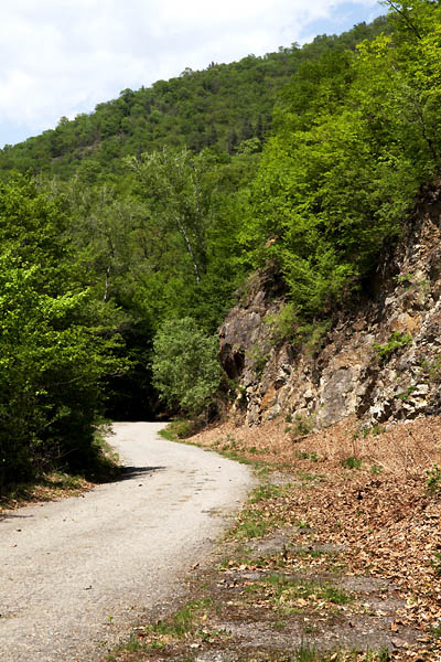 Однако, вопреки мрачным прогнозам, тропа вывела меня на пустую асфальтированную трассу до с.Бедиани (тип В/Д). Как бы ее описать… Представьте заросшие деревьями скалы, окружающие старую трассу, шорох разбегающихся ящериц, оглушительный запах цветов, звон коровьих колокольчиков, легкий ветер, шум реки.