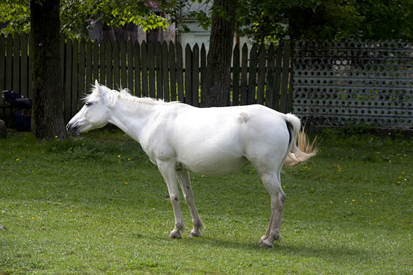 После перевала хорошую грунтовую дорогу сменила вымощенная камнем тропинка. Затем она превратилась в грязно-липкую грунтовку деревенского типа. Характерная особенность этого отрезка пути - деревни - призраки: дома как будто взорваны, остались отдельные стены и торчащая арматура. Промаявшись еще километров 15 я в конце концов нашла место у реки.
