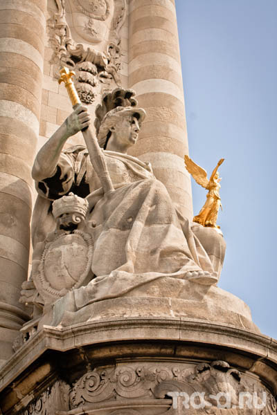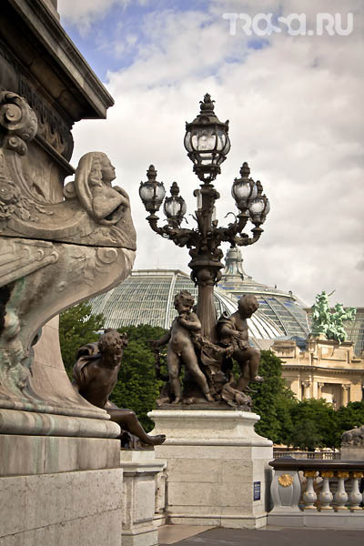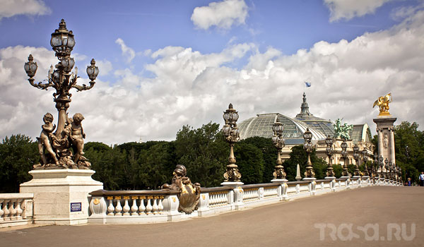 А невдалеке, красивейший мост Парижа - Мост Александра III (Pont Alexandre III). Арки и перила моста украшены фигурами нимф, пегасов, ангелов. По-настоящему изящный и красивый мост. И все бы хорошо, но, то тут, то там до вашего обоняния доносится зловонные запахи Парижской канализации, которые хоть убей, не удается игнорировать и получать удовольствия от прогулки.