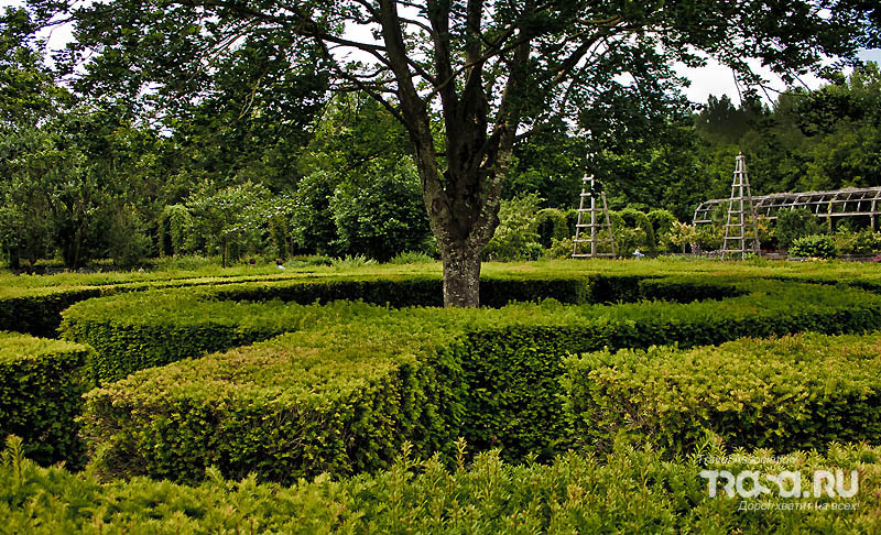 В центре парка разбиты цветники и зеленые лабиринты. Зонирование парка оформлено деревянными решетками, между которыми проложены дорожки, вымощенные природным камнем.