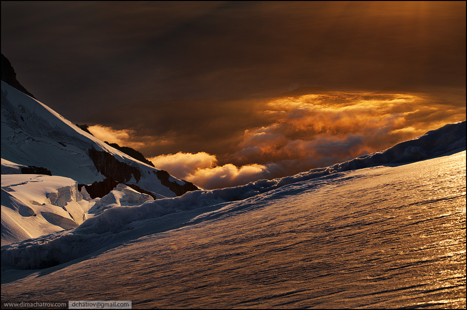 Ночь четвертого дня. Штурмовая, последняя перед финальным броском к вершине. Долго не удается заснуть. Мозг плавает где-то на грани прострации и сна. После стольких дней подъема организм уже смирился с постоянным стрессом и изо-всех сил мобилизуется, как перед атакой. Главное - это его внимательно слушать… Над палатками огромное небо, но звездная ночь в горах обманчива, тем более, что синоптики обещают серьезное ухудшение погоды в течение суток. Сразу вспоминается наше восхождение двумя месяцами ранее, когда появившееся в рассветном небе маленькое облачко за считанные минуты выросло в снежного монстра, превратив подъем от скал Ленца в настоящий ад. В два часа ночи мобильник выдает бравурную мелодию: побудка. Помните, как трудно было зимним утром встать в школу? Легкие симптомы горняшки возвращают в детство: та же школа, тот же фонарь за окном. И то же желание лечь и умереть, но только не вылезать из спальника… Но надо. Кому? Зачем? Движения скупые, на автоматизме и силе воли.
